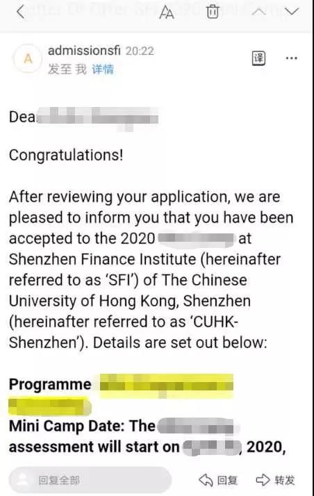 学员名片 本科院校:双非 专业背景:会计学 专业排名:第1 目标项目:财会为主,考虑其他经管学科、法硕,更倾向于专硕 目标院校: 清北复交人,中山、厦大等综合985,深高金 使用产品:精品协议班 入营offer:香港中文大学(深圳) 辅导前后对比 内容 辅导前 辅导后 英语等级 六级550+ 六级590+ 科研 论文1篇 — 实习 1段事务所 2段事务所 1段行研 文书 无准备 高质量文书 院校内部信息及资料 无了解 通过内部信息明确自身定位,通过资料准备考核 背景分析 ■ 相对优势 (1)成绩和排名十分优秀; (2)英语成绩优异,学员最想冲刺的清北复交人项目比较注重英语成绩,辅导后的六级590+属于十分优秀的成绩; (3)有高质量的实证论文,虽说专硕项目大部分对学术要求不高,但TOP学校的有些项目要求有论文。论文本身也是申请中的加分项; (4)学员自身认真踏实,不断突破自己。学员报名前的六级550+已经不是短板,但学员坚持要把六级刷分,新六级也让学员的英语成为了长板。在平时的辅导中,该学员不像大部分学员需要咨询师经常push,会主动给自己做学习计划,并要求咨询师定期检查。 ■ 不足之处 (1)该学员的本科院校并非985 / 211高校,学校排名是申请中最大的短板; (2)学员想申请专硕项目,专硕项目相当看重实习,只有一段实习略显不足; (3)学员报名时很迷茫,不明晰自己的研究生大学的定位,没有明确的目标。 ■ 申请策略 学员在成绩排名、英语六级和科研上均有一定优势,具备较好的综合能力,唯一的短板是本科院校。 冲刺清北复交人应该避免神仙打架的热门项目,如清华五道口、复旦管院、上交高金。申请名校采用海投策略,TOP5院校的非热门经管项目、法硕项目可以一试!深高金在深圳是排名前几的项目,对英文要求较高,学员申请十分有优势,值得尝试! 此外尽量多投一些面试较早的学校,拿到保底OFFER后,可以不再申请兴趣不大的学校,后期全力冲刺名校。 根据学员自身需求和项目申请实际,最终咨询师和班主任为学员定制的学校申请策略如下。 前期辅导 ■ 实习 匹配的咨询师具备丰富的专硕申请经验,拥有多段实习,指导学员尽快多申请高质量的实习,提高在专硕项目中的竞争力。经过辅导后,学员增加2段高质量的实习。 ■ 文书辅导 学员的简历、个人陈述、推荐信等文书,首先由学员和基础咨询师一起制作、修改,完成第一版已修改较为完善的文书,后递交经管保研通组建的专业文书辅导团,根据学员投递夏令营的特点,进行点对点精细化的完善润色。最后学员的中英文文书质量十分高,好的文书是入营的关键! ■ 院校内部信息及录取资料 在定位前,咨询师向学员提供了经管TOP20强校所有项目的录取内部信息,让学员进行初步择校。后续咨询师和班主任与学员多次沟通,确定目标院校、申请策略和学习计划,并将目标院校的夏令营考核资料提供给学员。 ■ 夏令营申请 学员申请过程中,基础咨询师和班主任会定期提醒学员报名deadline。经管保研通有非常细致完善的内部excel手册提醒学员申请进度,班主任会定时将夏令营申请的进度发送至学员,并督促其申请进度,且微信公众号会每日更新夏令营通知。 入营offer 经过咨询师的悉心辅导和学员自身的不懈努力,学员成功斩获深高金的入营offer。 深高金申请经验 ■ 早做准备早申请 申请要趁早,深高金的批次越靠前,申请成功的几率越大,所以大家还是要早做准备投递。 ■ 自我施压,自主学习 基础咨询师和班主任每周会检查学员的保研基础准备情况,与学员沟通保研相关问题。但该学员自己做了非常详细的计划,十分上进,不太需要咨询师督促复习。咨询师每周会对学员的复习情况抽查2-3次,主要是关注学员的复习进度。如果看到复习的内容有需要重点注意的地方,会和学员进行沟通。 ■ 心态要稳