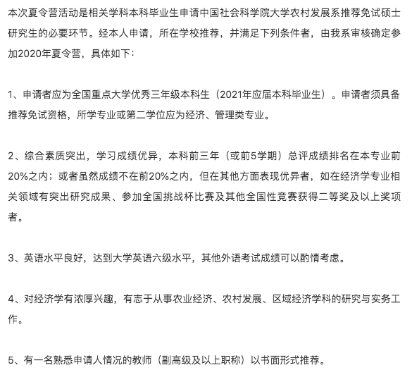 首页 > 保研资讯 > 拟招30营员!国科大农村发展系夏令营活动通知